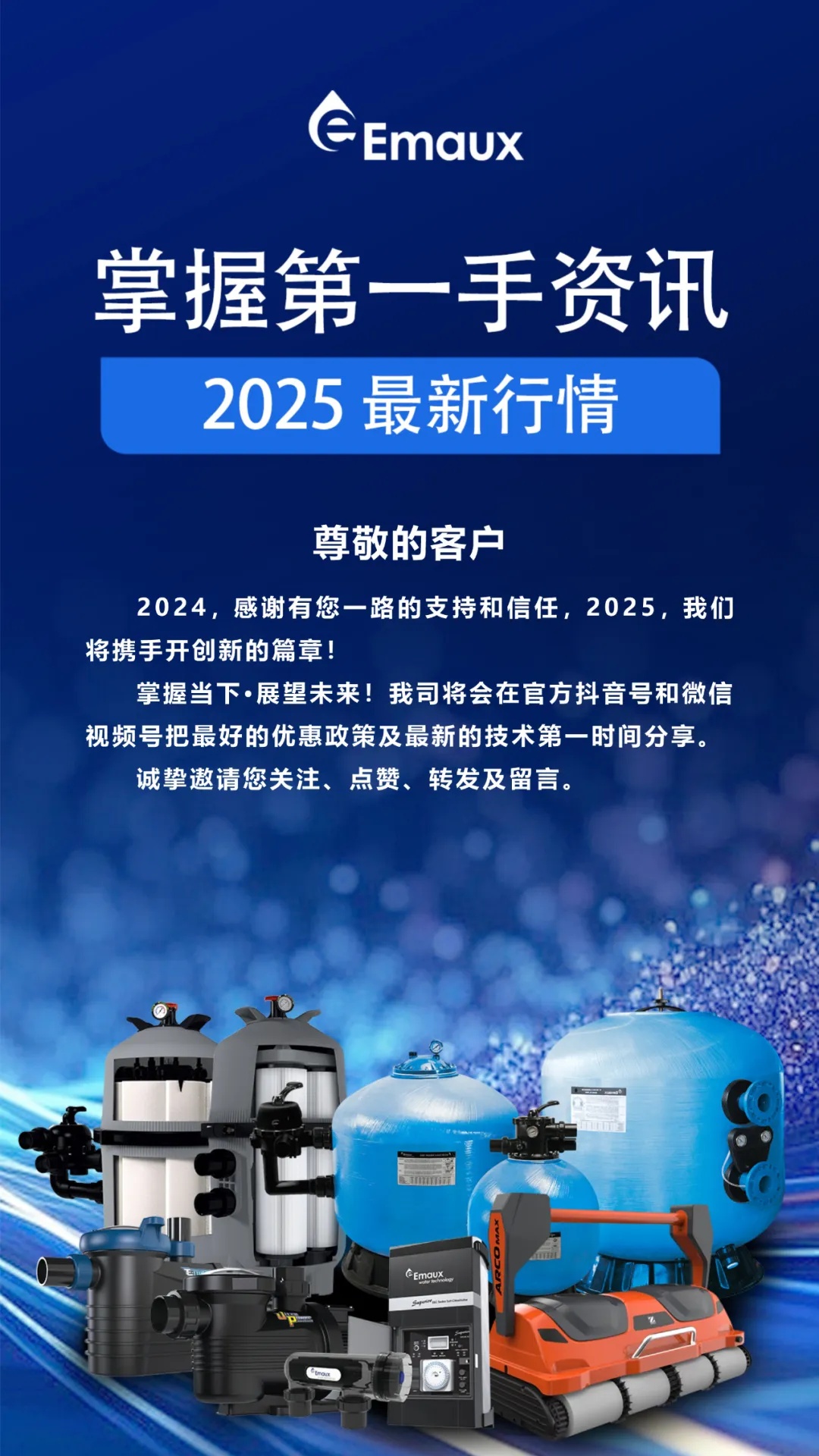 鞭炮聲聲辭舊歲,金蛇納福迎新春,意萬仕(中山)泳池設(shè)備有限公司全體同仁給您拜年了恭祝全球華人和國際友人新春快樂、闔家幸福。衷心感謝社會各界人士、供應(yīng)商、經(jīng)銷商及新老客...